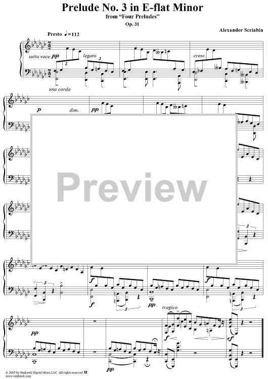 "Prelude No. 3 in E-flat major" Sheet Music by Alexander Scriabin