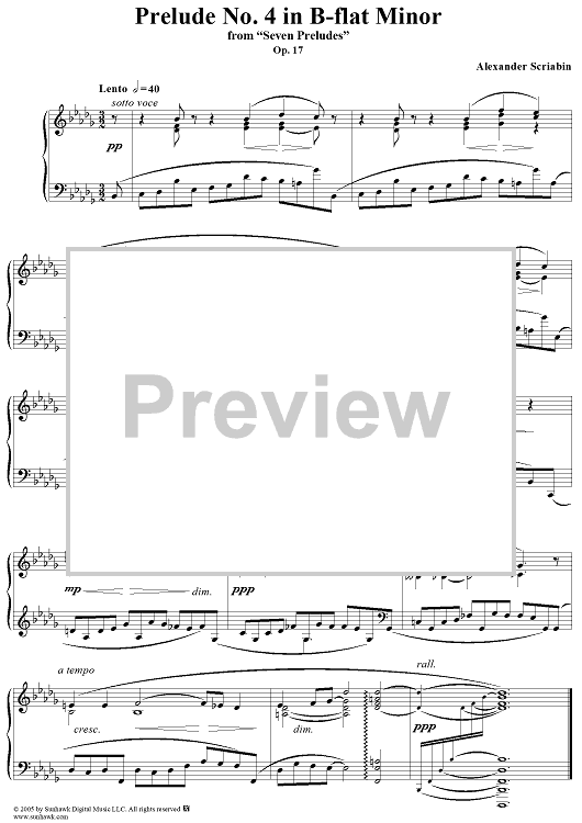 "Prelude No. 4 in B-flat minor" Sheet Music by Alexander Scriabin