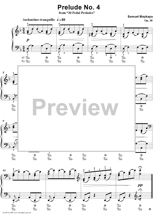 "Prelude No. 4" Sheet Music by Samuel Maykapar