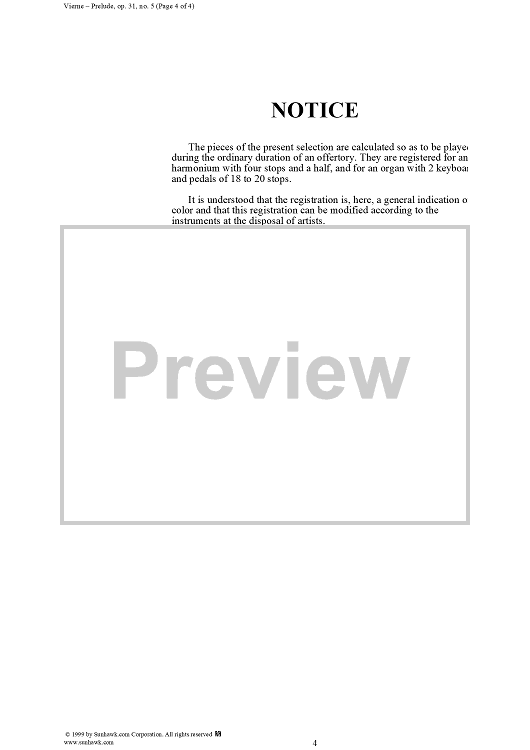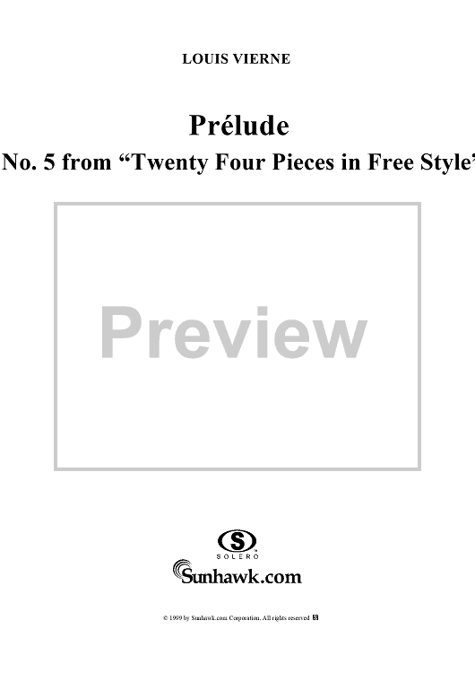 Digital Sheet Music for Prélude No. 5 from "Twenty Four Pieces in Free Style," Op. 31 by Louis Vierne scored for Organ Solo; id:119410