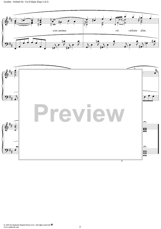 "Prelude No. 5 in D major" Sheet Music by Alexander Scriabin