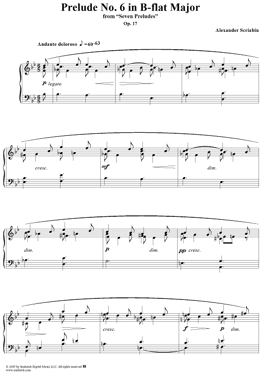 "Prelude No. 6 in B-flat major" Sheet Music by Alexander Scriabin