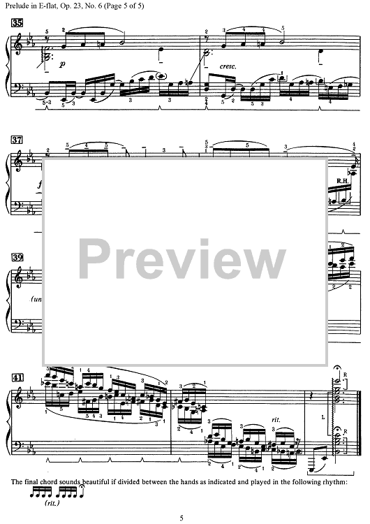 "Prelude, Op. 23, No. 6 in E-flat Major" Sheet Music by Sergei Rachmaninoff