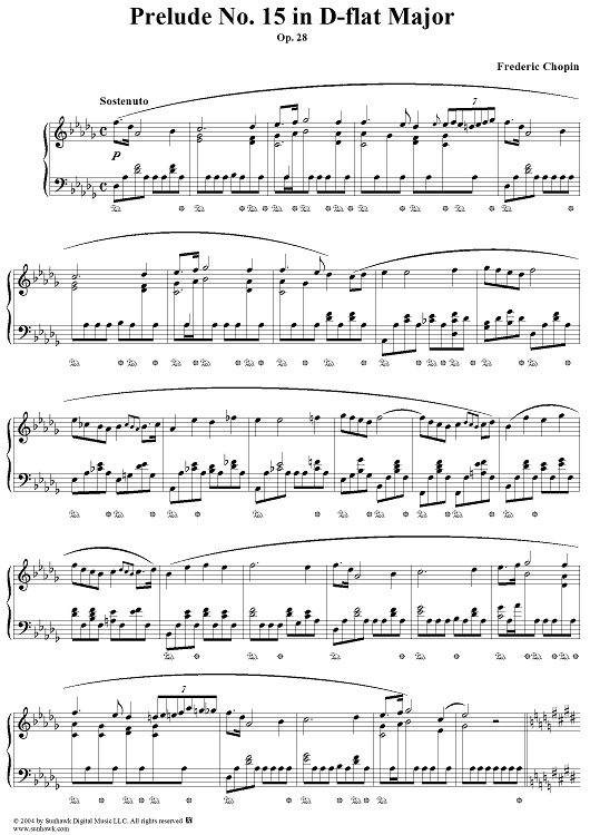 "Prelude, Op. 28, No. 15 in D-flat Major" Sheet Music by Frederic Chopin
