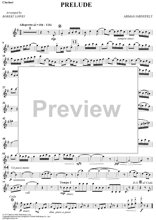 Digital Sheet Music for Prelude by Robert Lowry, Armas Jarnefelt scored for Bb Clarinet/Piano; id:438013