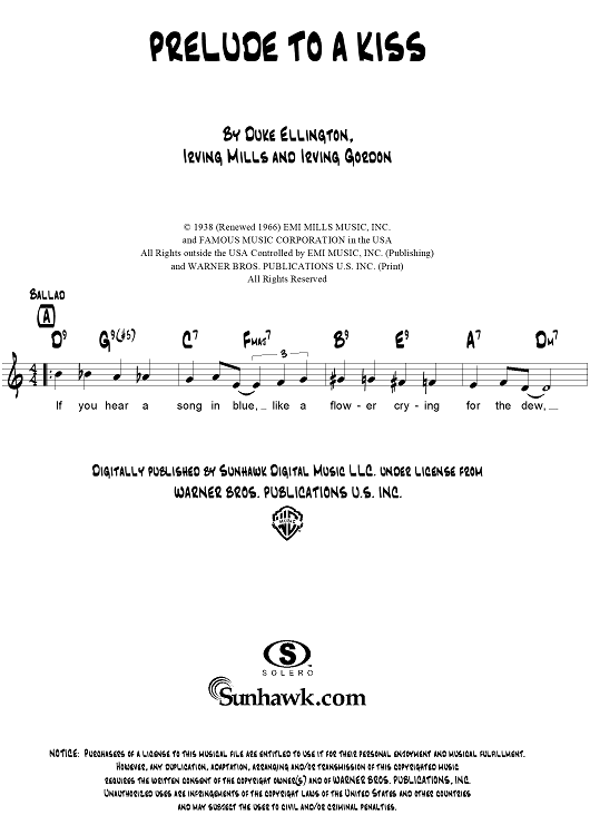 Digital Sheet Music for Prelude to a Kiss by Duke Ellington, Irving Mills, Irving Gordon scored for Lead Sheet; id:307966