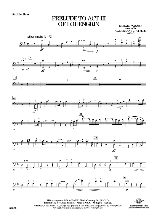 Digital Sheet Music for Prelude to Act III of Lohengrin - Double Bass by Richard Wagner, Carrie Lane Gruselle scored for String Orchestra; id:421883