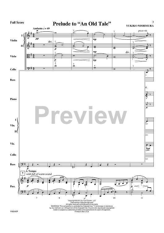 "Prelude to "An Old Tale" - Score" Sheet Music by Yukiko Nishimura