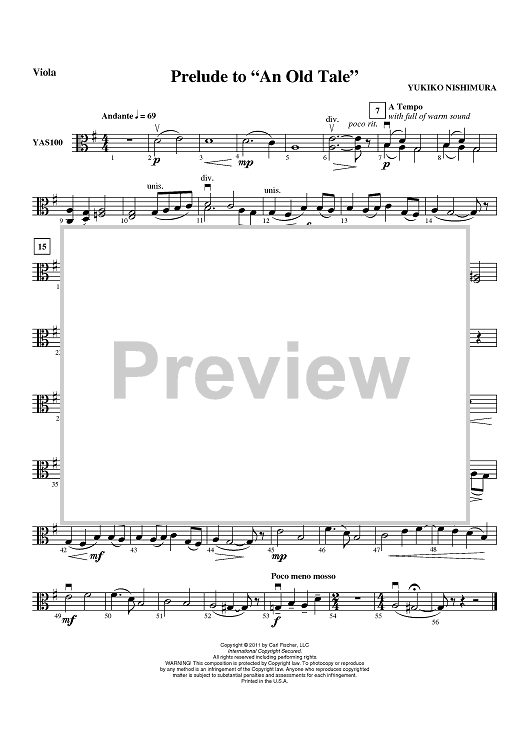 "Prelude to "An Old Tale" - Viola" Sheet Music by Yukiko Nishimura