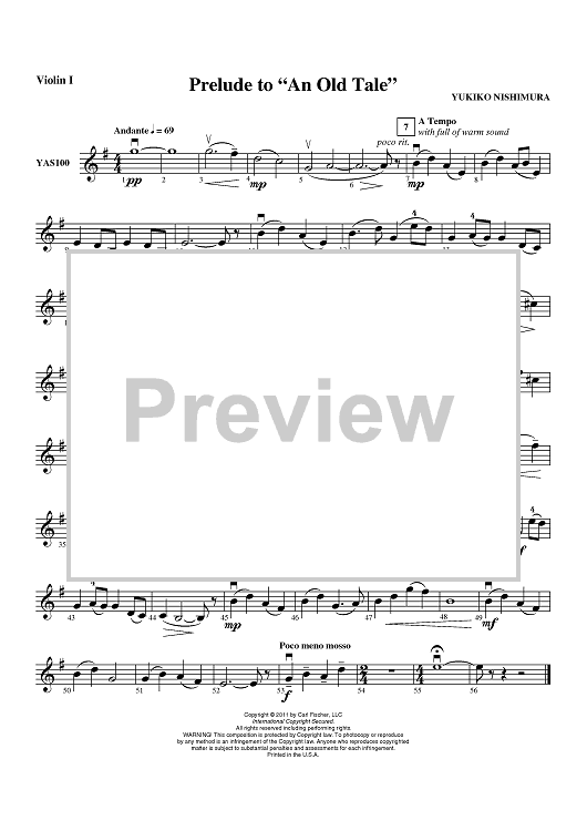 Digital Sheet Music for Prelude to "An Old Tale" - Violin 1 by Yukiko Nishimura scored for Orchestra; id:419048