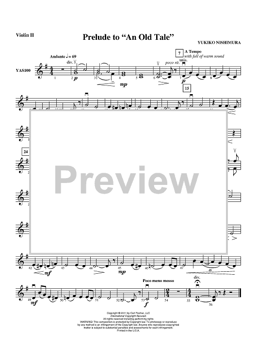 Digital Sheet Music for Prelude to "An Old Tale" - Violin 2 by Yukiko Nishimura scored for Orchestra; id:419049