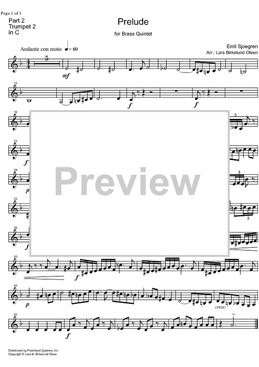 Digital Sheet Music for Prelude - Trumpet in C by Lars M. Birkelund Olsen, Emil Sjogren scored for Brass Quintet; id:321981