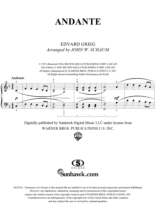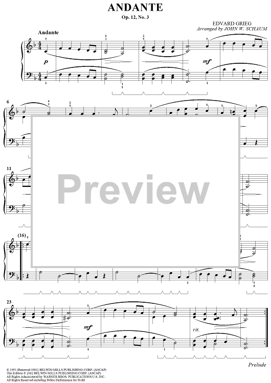 Digital Sheet Music for Preludes: Andante by Edvard Grieg, John W. Schaum scored for Piano Solo; id:290146