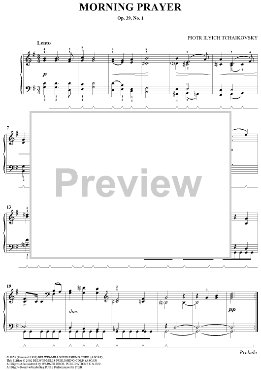 "Preludes: Morning Prayer" Sheet Music by Peter Ilyich Tchaikovsky
