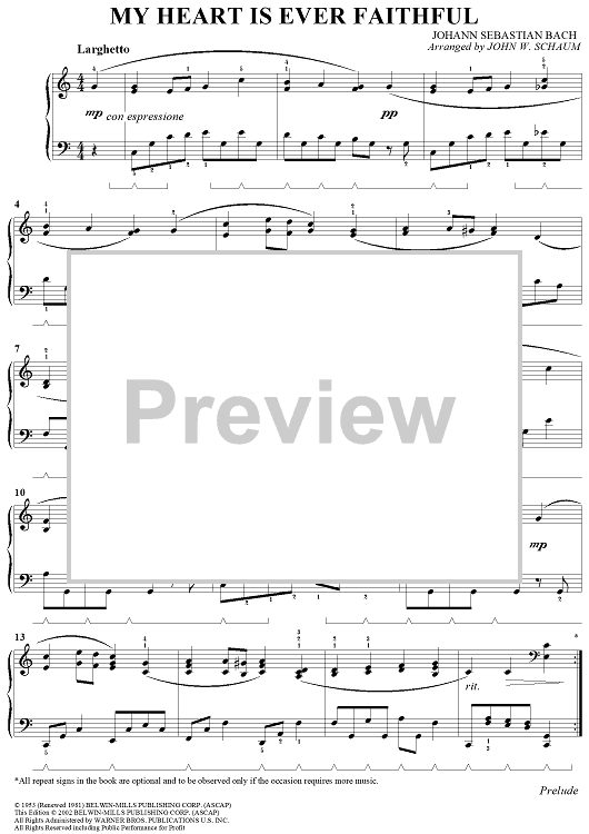 Digital Sheet Music for Preludes: My Heart Is Ever Faithful by John W. Schaum, Johann Sebastian Bach scored for Piano Solo; id:290138