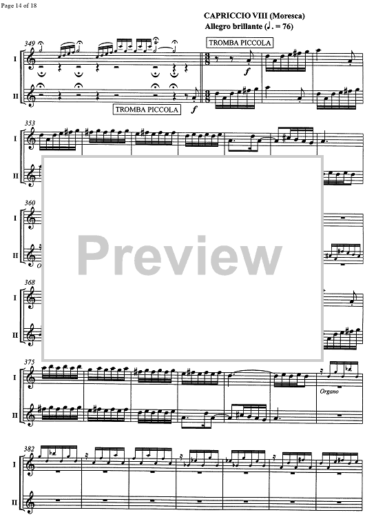 Digital Sheet Music for Preludi e Capricci sopra una Canzone a Ballo - Trumpets 1 & 2 by , Daniele Zanettovich scored for 2 Trumpets/Organ; id:350459