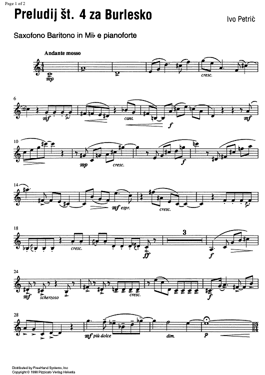 "Preludij st. 4 za Burlesko - E-flat Baritone Saxophone" Sheet Music by Ivo Petric