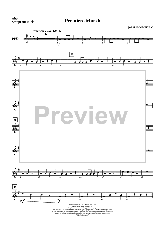 "Premiere March - Alto Sax" Sheet Music by Joseph Compello