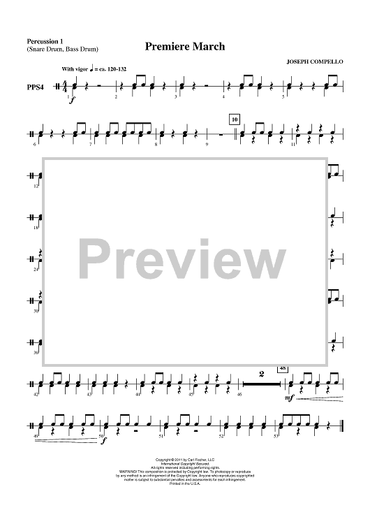 "Premiere March - Percussion 1" Sheet Music by Joseph Compello