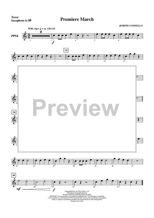 "Premiere March - Tenor Sax" Sheet Music by Joseph Compello