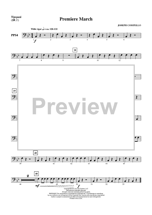 "Premiere March - Timpani" Sheet Music by Joseph Compello