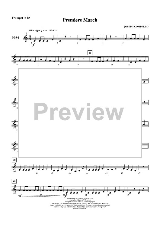 "Premiere March - Trumpet in Bb" Sheet Music by Joseph Compello