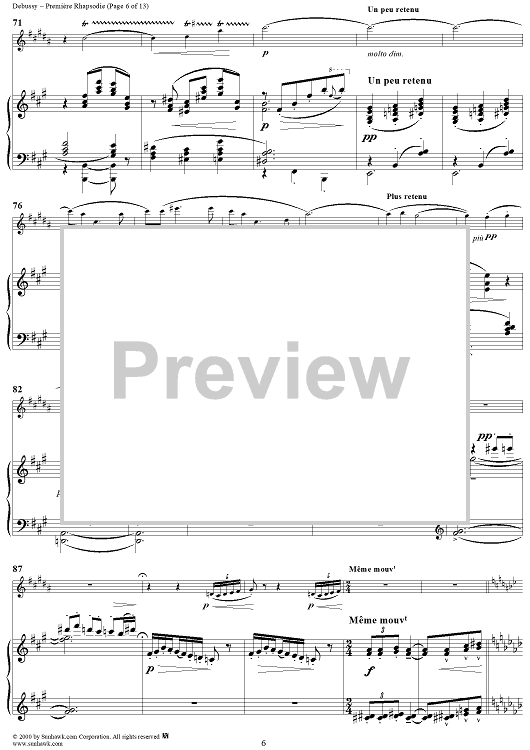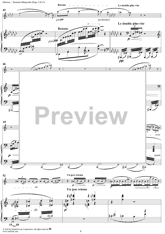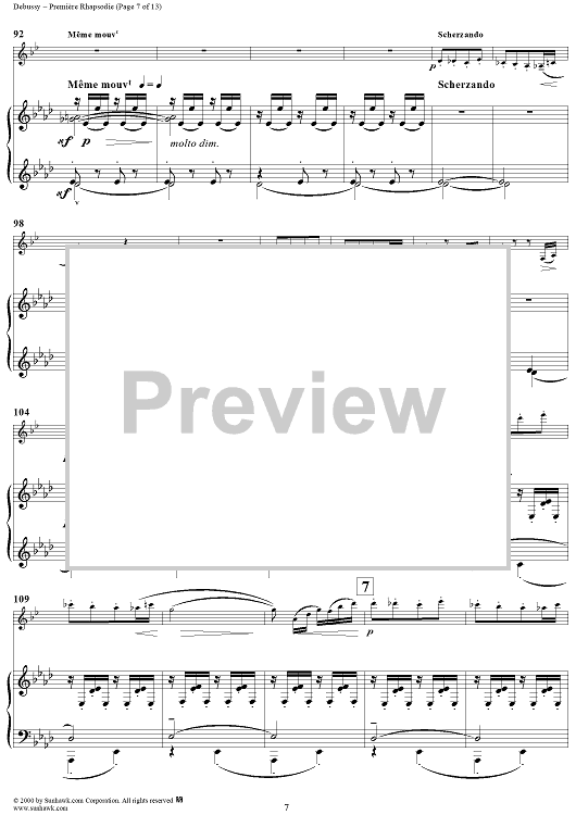 Digital Sheet Music for Première Rhapsodie - Piano Score by Claude Debussy scored for Clarinet/Piano; id:241360