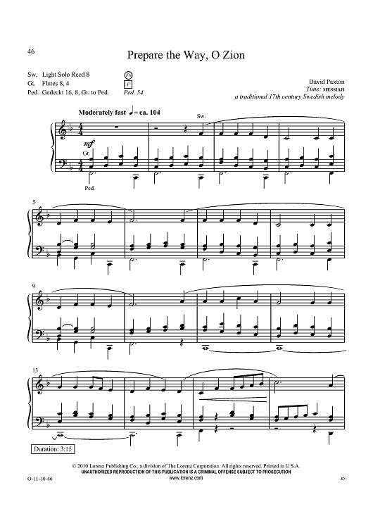 Digital Sheet Music for Prepare the Way, O Zion by , Traditional Swedish, David Paxton scored for Organ Solo; id:437268