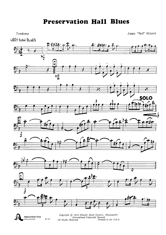 "Preservation Hall Blues - Trombone" Sheet Music by James "Red" McLeod