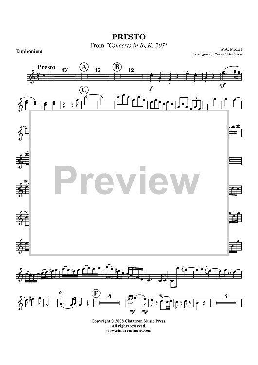 Digital Sheet Music for Presto - from "Concerto in Bb, K. 207" - Euphonium BC/TC by Wolfgang Amadeus Mozart, Robert Madeson scored for Euphonium/Piano; id:416906