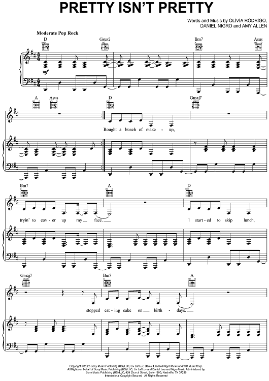 Digital Sheet Music for Pretty Isn't Pretty by Amy Allen, Daniel Nigro, Olivia Rodrigo scored for Piano/Vocal/Chords; id:501078