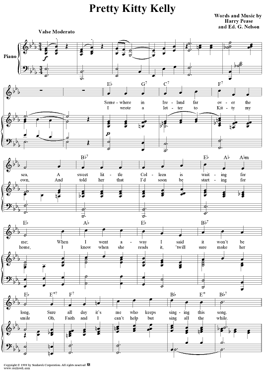 Digital Sheet Music for Pretty Kitty Kelly by Harry Pease, Ed G. Nelson scored for Piano/Vocal/Chords; id:109035