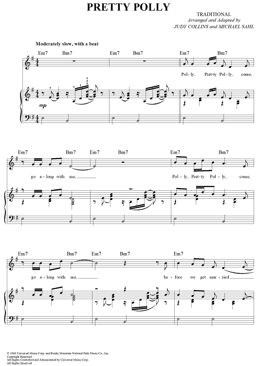 Digital Sheet Music for Pretty Polly by Judy Collins, Michael Sahl, Traditional scored for Piano/Vocal/Chords; id:285955