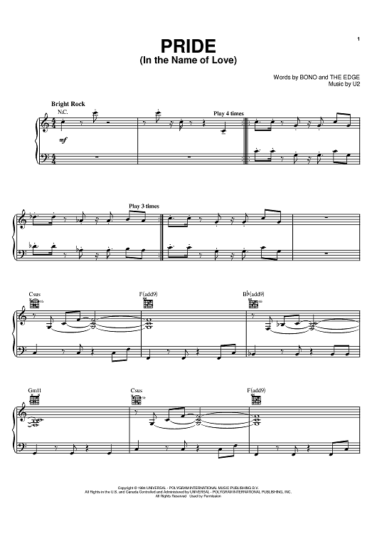 Digital Sheet Music for Pride (In The Name Of Love) by U2, Bono, The Edge, Clivelles & Cole scored for Piano/Vocal/Chords; id:381990