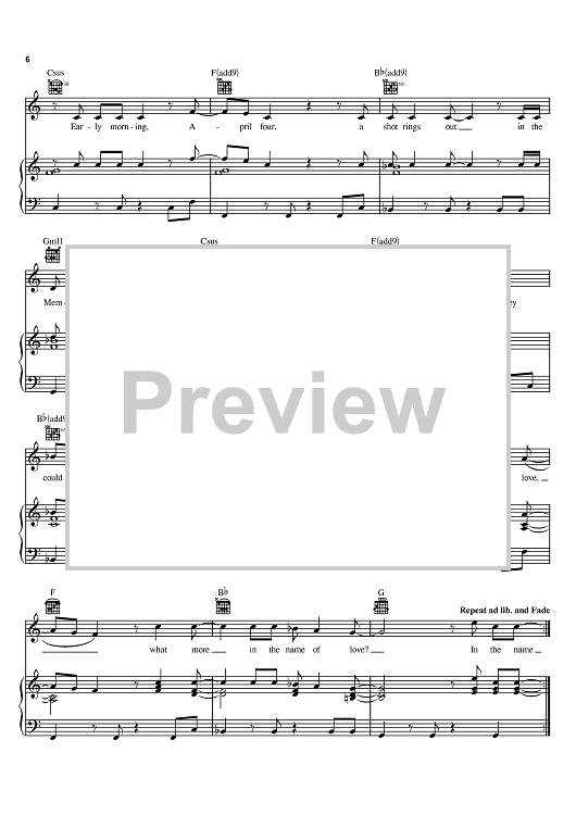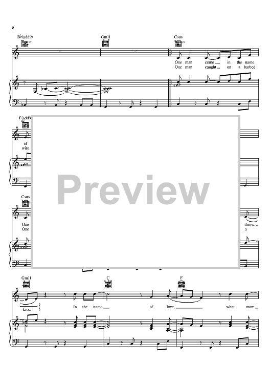 "Pride (In The Name Of Love)" Sheet Music by U2