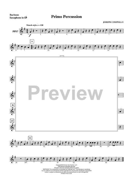 Digital Sheet Music for Primo Percussion - Baritone Sax by Joseph Compello scored for Concert Band; id:431045