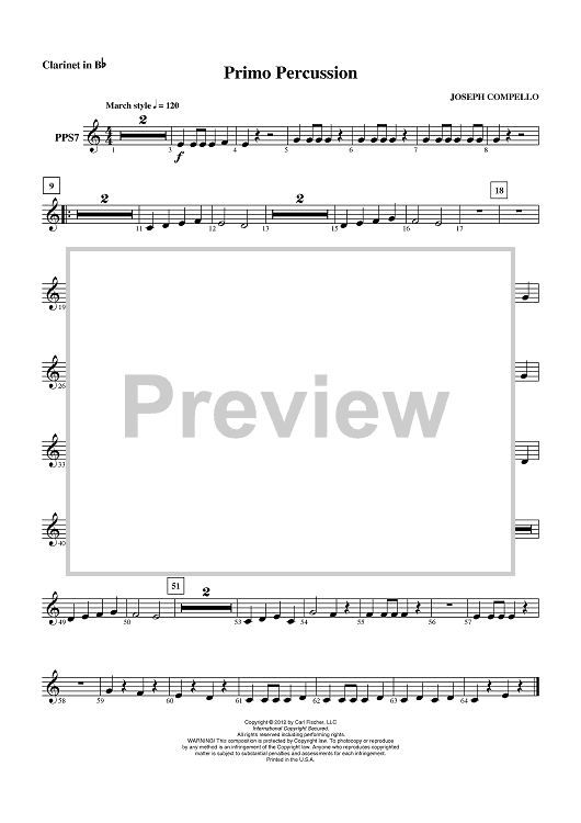 "Primo Percussion - Clarinet in Bb" Sheet Music by Joseph Compello
