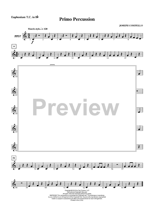 Digital Sheet Music for Primo Percussion - Euphonium TC by Joseph Compello scored for Concert Band; id:431051
