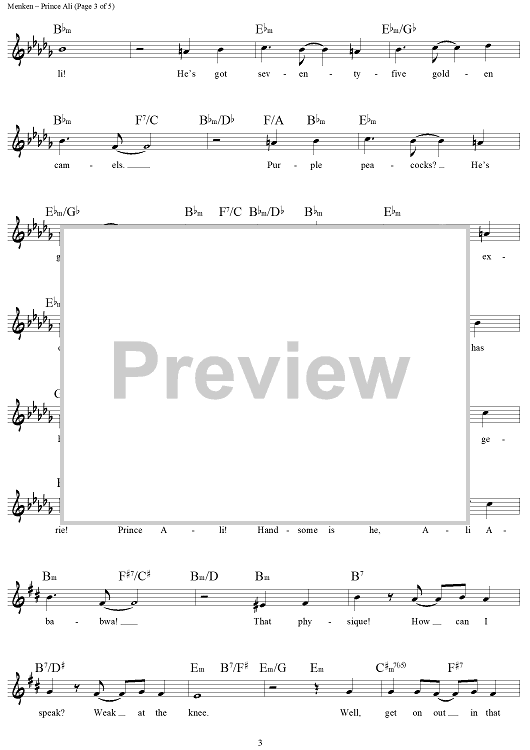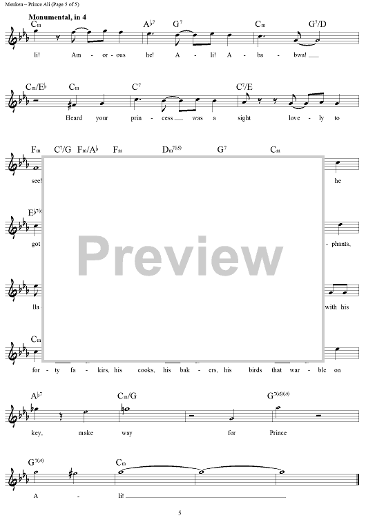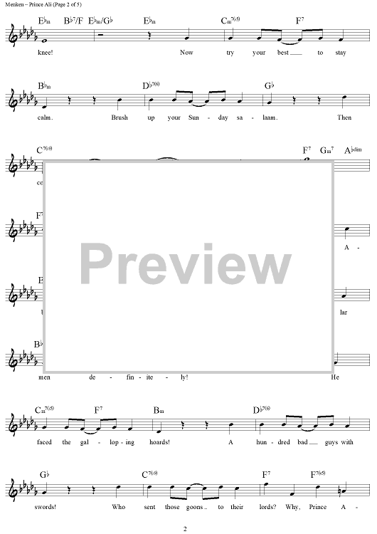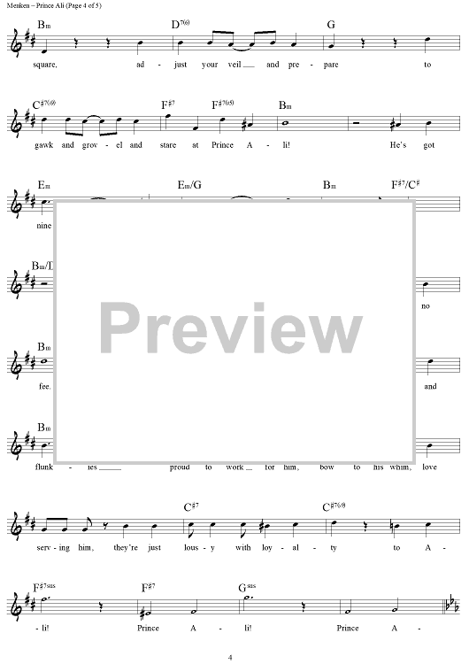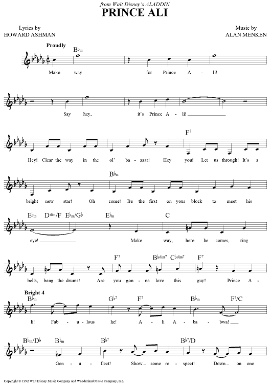 Digital Sheet Music for Prince Ali by Alan Menken, Howard Ashman scored for Lead Sheet; id:444195
