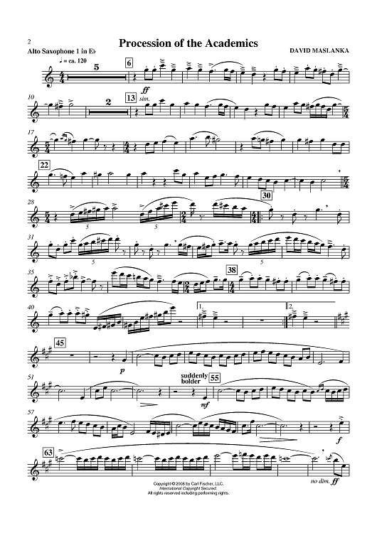 "Procession of the Academics - Alto Sax 1" Sheet Music by David Maslanka