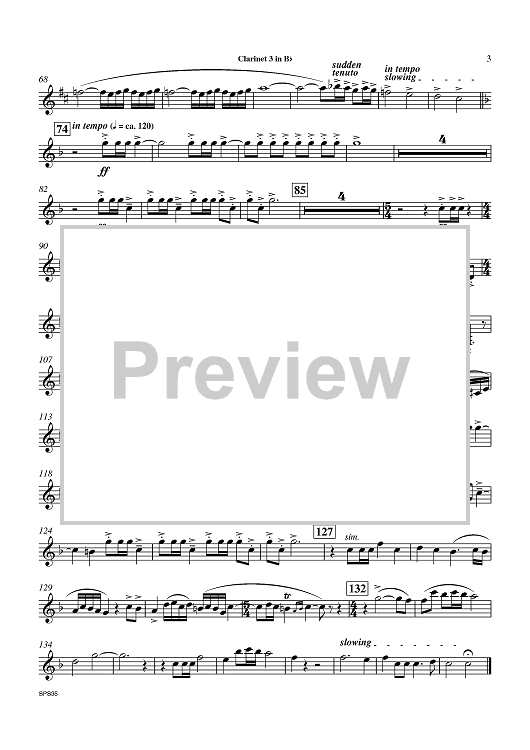Digital Sheet Music for Procession of the Academics - Clarinet 3 in B-flat by David Maslanka scored for Concert Band; id:409431
