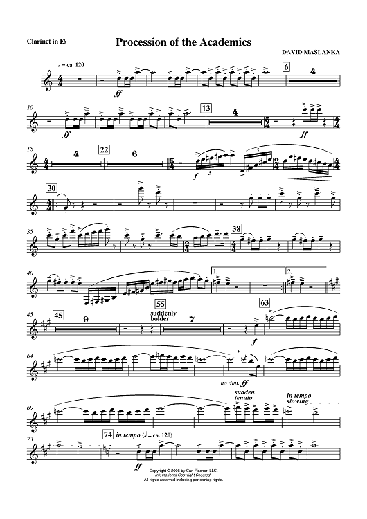 "Procession of the Academics - Clarinet in E-flat" Sheet Music by David Maslanka