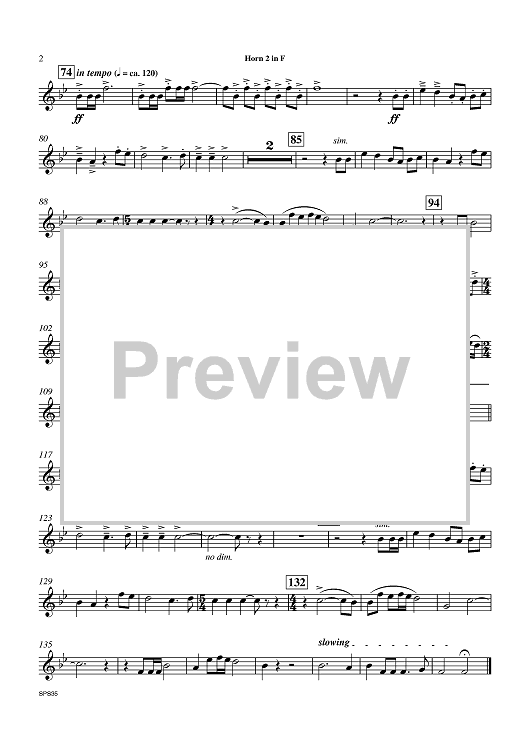 Digital Sheet Music for Procession of the Academics - Horn in F 2 by David Maslanka scored for Concert Band; id:409444