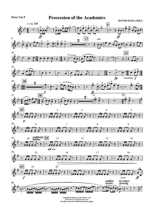 "Procession of the Academics - Horn in F 2" Sheet Music by David Maslanka