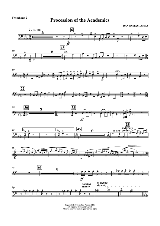 "Procession of the Academics - Trombone 2" Sheet Music by David Maslanka