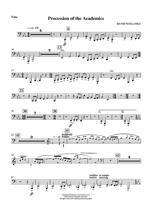 "Procession of the Academics - Tuba" Sheet Music by David Maslanka