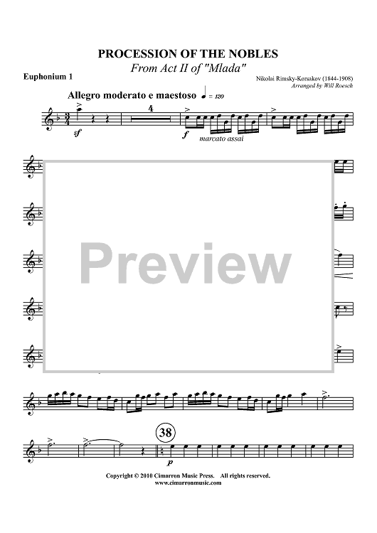 Digital Sheet Music for Procession of the Nobles - From Act II of "Mlada" - Euphonium 1 BC/TC by Will Roesch, Nikolai Rimsky-Korsakov scored for Tuba Ensemble; id:427009