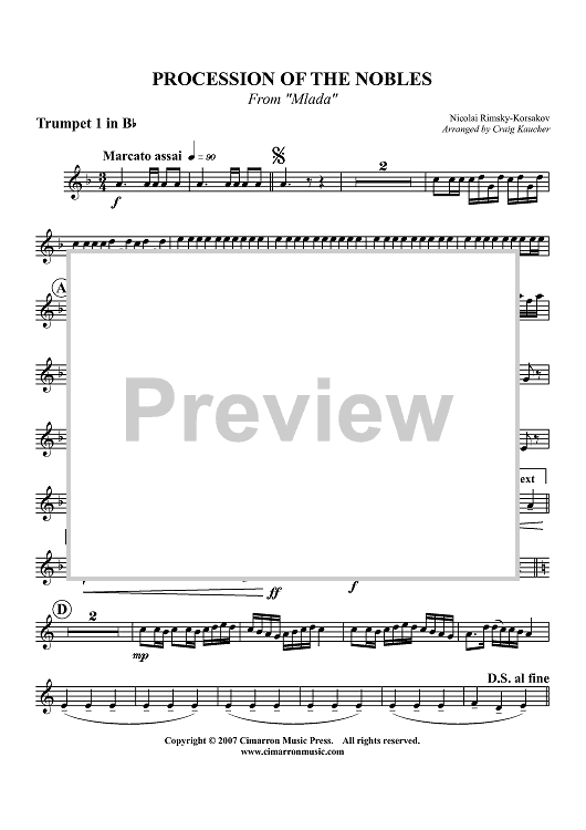 Digital Sheet Music for Procession of the Nobles - From "Mlada" - Trumpet 1 in Bb by Craig Kaucher, Nikolai Rimsky-Korsakov scored for Brass Quartet; id:413880