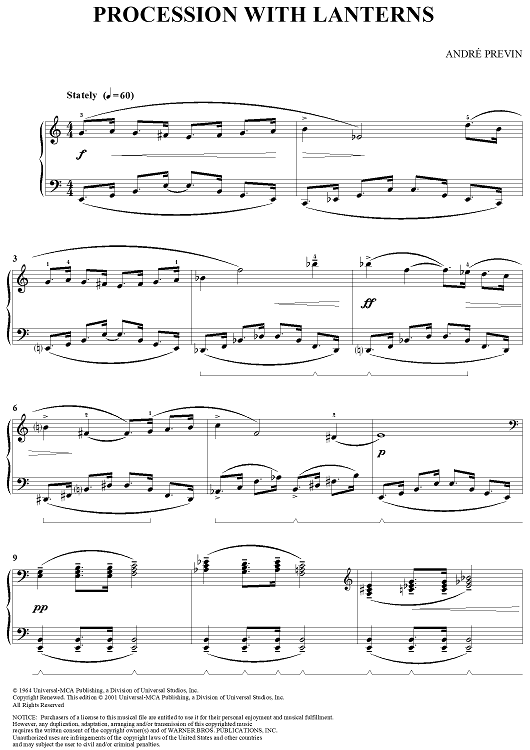"Procession with Lanterns" Sheet Music by Andre Previn