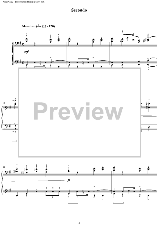 Digital Sheet Music for Processional March by Leopold Godowsky scored for 1 Piano, 4 Hands; id:285054